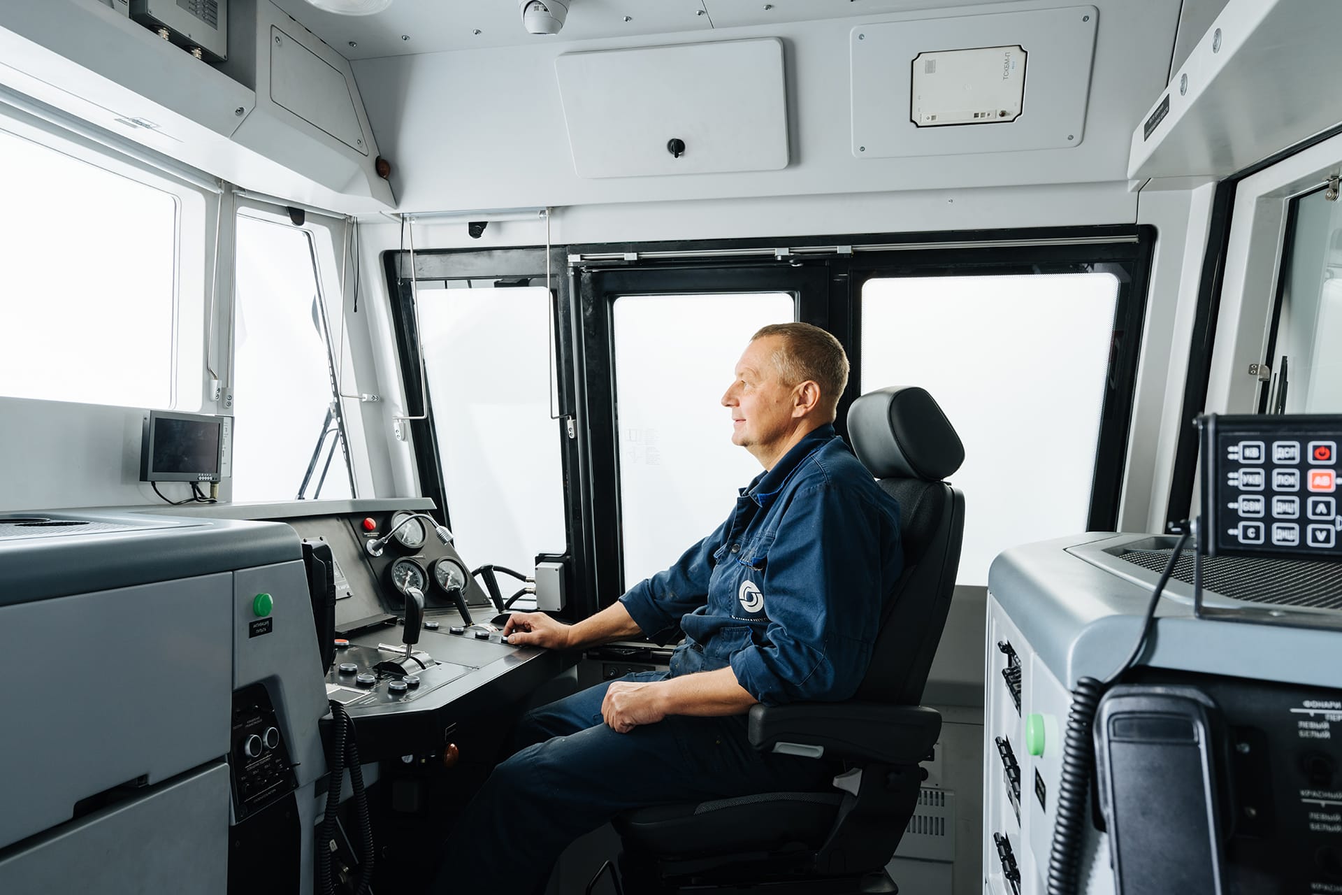 - кабина машиниста оснащена двумя рабочими пультами: проход между ними расширен за счет оптимизации конструкции самих пультов
