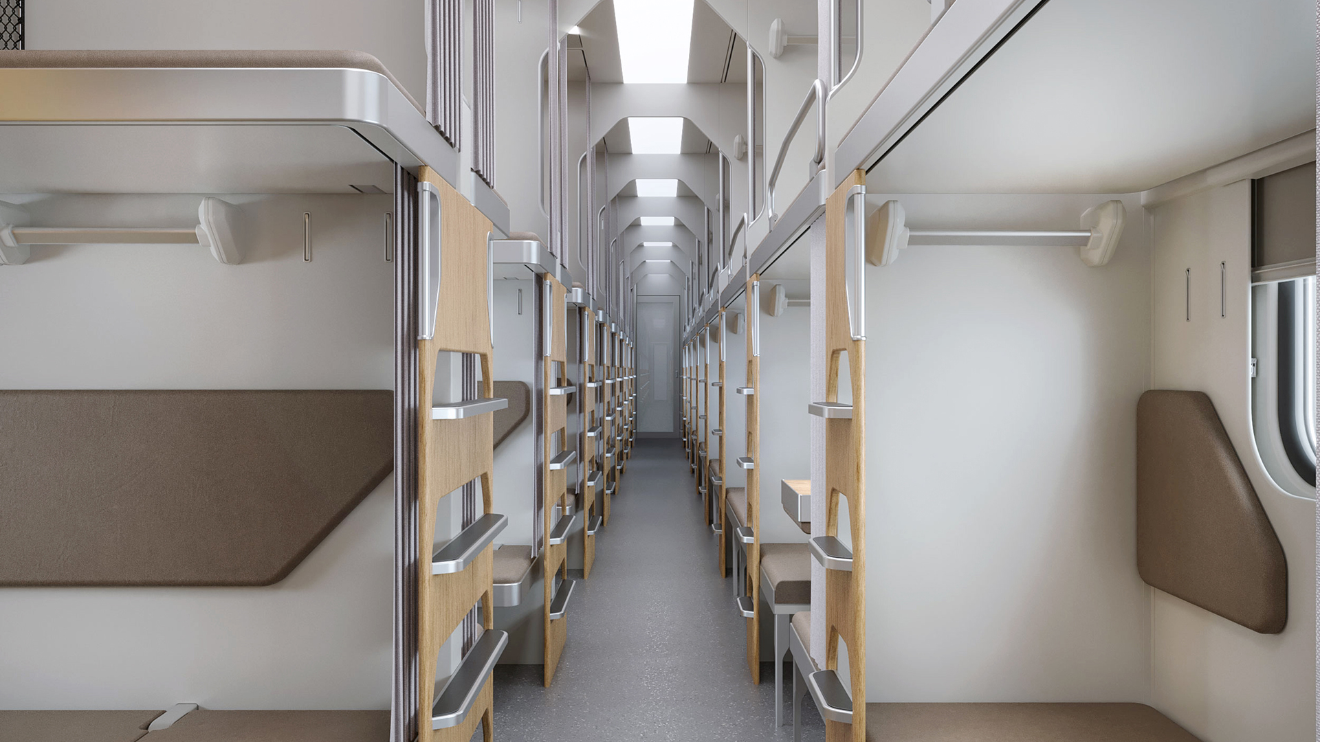 Концепт интерьера плацкартного пассажирского вагона для поездов дальнего следования разработан для АО «ТМХ» – крупнейшего производителя рельсового транспорта в России и СНГ.