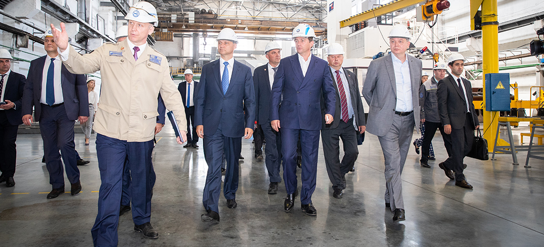 О. Белозёров ознакомился с обновленной производственной площадкой предприятия, на которой в течение последних лет реализуется программа комплексного обновления. Он посетил цеха производства ключевых компонентов дизельного двигателя (механический цех №10, цех топливных систем, машиносборочный цех), осмотрел организацию нового направления работы завода – ремонт тепловозов, а также Инжиниринговый центр двигателестроения ТМХ – созданный в 2018 году центр компетенций по разработке новых конструкций дизелей.