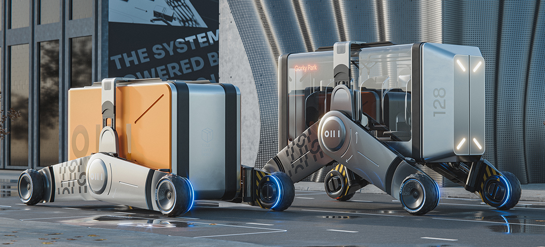 Автономная смарт-система OIII (О-Три) - победитель iF Design Award 2022. Это концепт транспортной системы для агломераций будущего, в которых беспилотные технологии внедряются повсеместно. Состоит из нескольких модулей: беспилотный модуль-шасси (осуществляет перевозки и выполняет роль транспорта для пассажирских и грузовых перевозок «последней мили»); пассажирский модуль; грузовой контейнер с изолированными отсеками для сбора отходов.