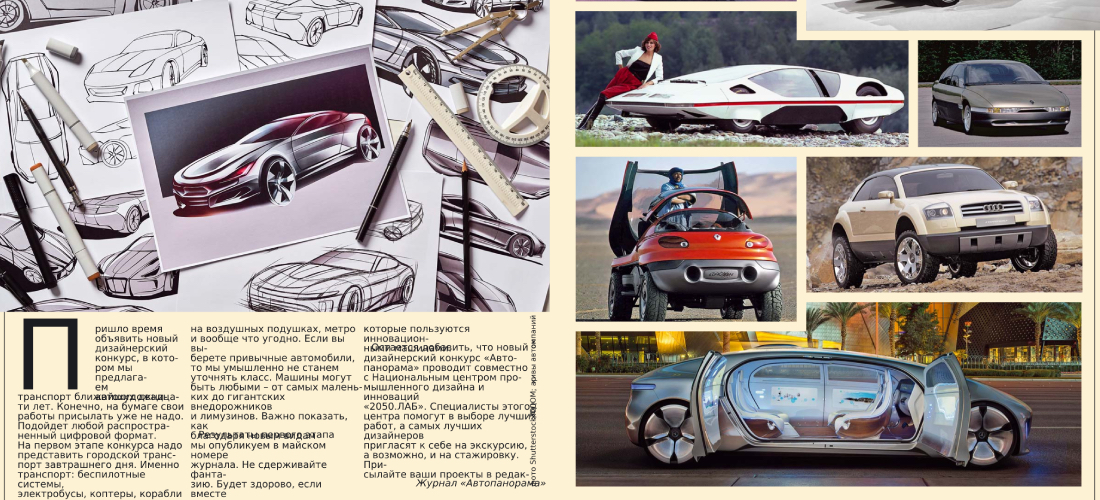 Остается добавить, что новый дизайнерский конкурс «Автопанорама» проводит совместно с Национальным центром промышленного дизайна и инноваций 2050.ЛАБ. Специалисты этого центра помогут в выборе лучших работ, а самых лучших дизайнеров пригласят к себе на экскурсию, а возможно, и на стажировку. Присылайте ваши проекты в редакцию «Автопанорамы» по адресу: pavlov@autopanorama.ru. За дело!