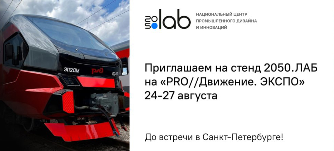 Национальный центр промышленного дизайна и инноваций 2050.ЛАБ примет участие в Международном железнодорожном салоне техники и технологий «PRO//Движение. ЭКСПО», который пройдет 24–27 августа в Санкт-Петербурге в Музее железных дорог (Библиотечный переулок, 4, к.2).
