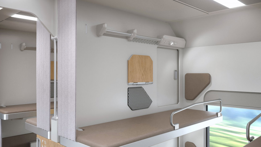 Одно из нестандартных решений – размещение в некоторых купе модульных конструкций для хранения багажа, верхней одежды, обуви. Еще несколько новшеств: возможность трансформации нижних полок в два кресла со столиком, установка окошек с двухсторонними замками в перегородке между жилыми отсеками.
